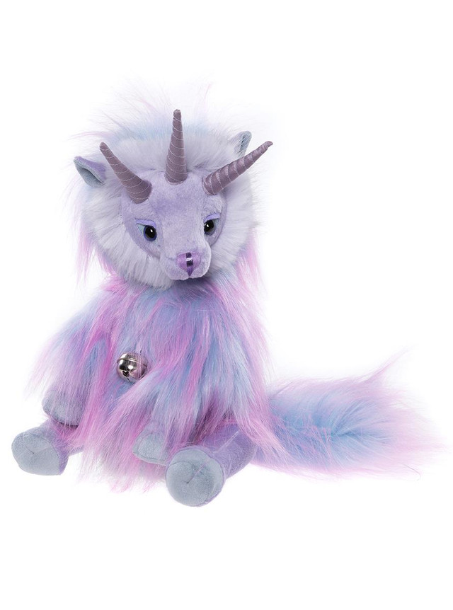Introducing the enchanting Tricorn, a creature shrouded in mystery! Not much is known about this captivating being, but those fortunate enough to catch a glimpse of its soft, lilac, pink, and blue plush fur describe it as gentle and affectionate, especially with its loved ones. Its majestic three horns sit proudly atop its head. Tricorn is complete with a charming silver bell pendant and will make a delightful addition to any hug. Limited edition of only 1000 pieces globally. Suitable for ages 3 years+. Tricorn height: 33cm/13”/11 Bear Paws.
