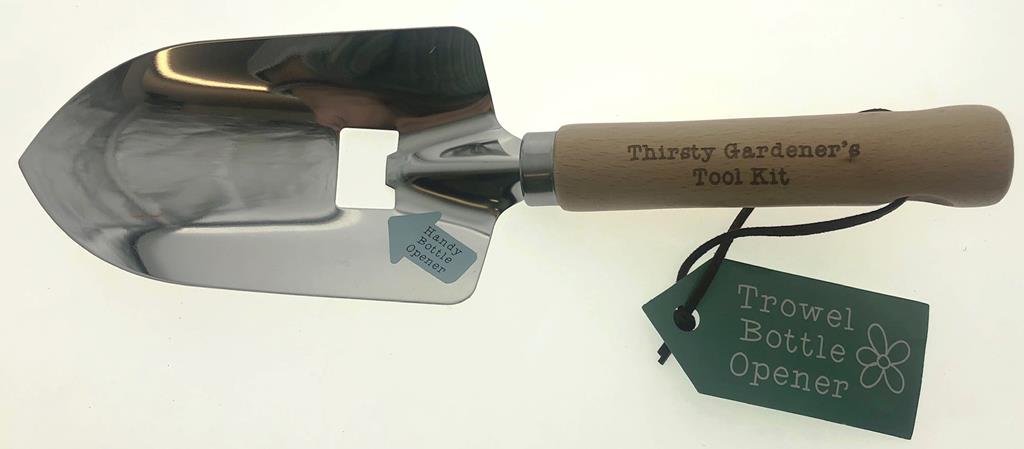 – Dual-purpose garden trowel and bottle opener with durable metal construction. – Compact design for functionality in both gardening and beverage opening tasks.