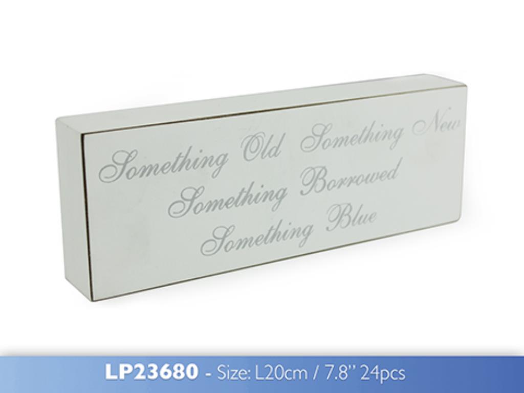 Celebrate timeless wedding traditions with the Old New Borrowed Block, a meaningful keepsake that symbolizes love and good fortune. Featuring customizable elements, it allows for personalized touches to honor your unique journey. This elegant piece is designed to commemorate the cherished sentiment behind the ‘something old, something new, something borrowed, something blue’ tradition.