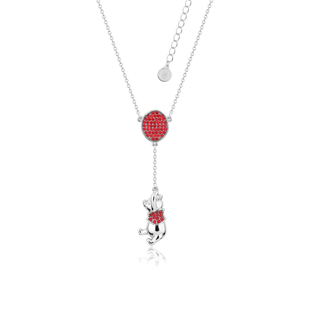 This highly detailed 3D sculptured necklace features Winnie The Pooh suspending from his iconic red balloon which shimmers with bold red crystals.