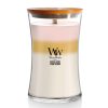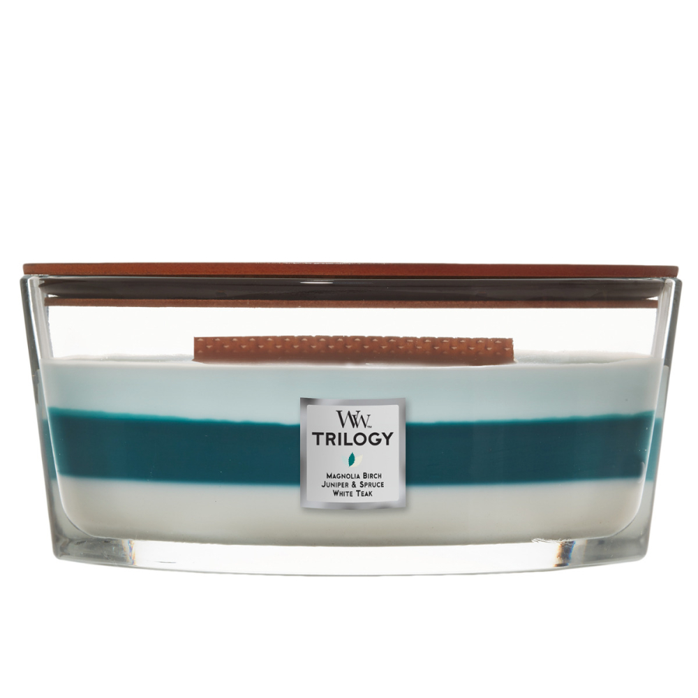 The Trilogy Candle allows you to enjoy three harmonious fragrances and the soothing sound of a crackling wooden wick. Each layer of wax contains a different fragrance that compliments the next so as the candle burns, each fragrance melts into the next, creating a unique new scent.